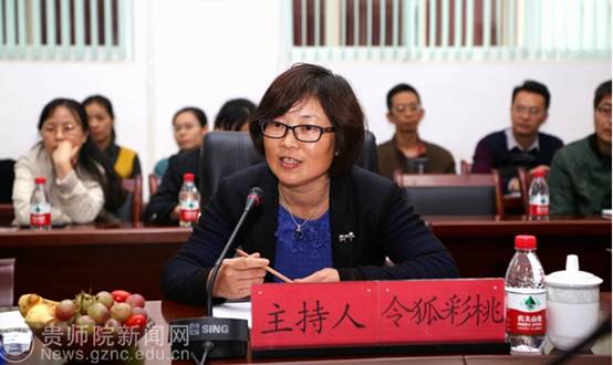 参观考察结束后,我校在第一会议召开了贵州师范学院“优秀校园文化育人基地”建设情况汇报会。会议由令狐彩桃主持。